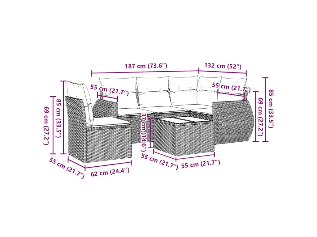 Tato zahradní sedací souprava je dokonalým doplňkem vaší zahrady, terasy nebo dvorku a poskytne vám pohodlné a příjemné místo, kde si můžete povídat s rodinou a přáteli nebo jen tak odpočívat a užívat si pobyt venku.