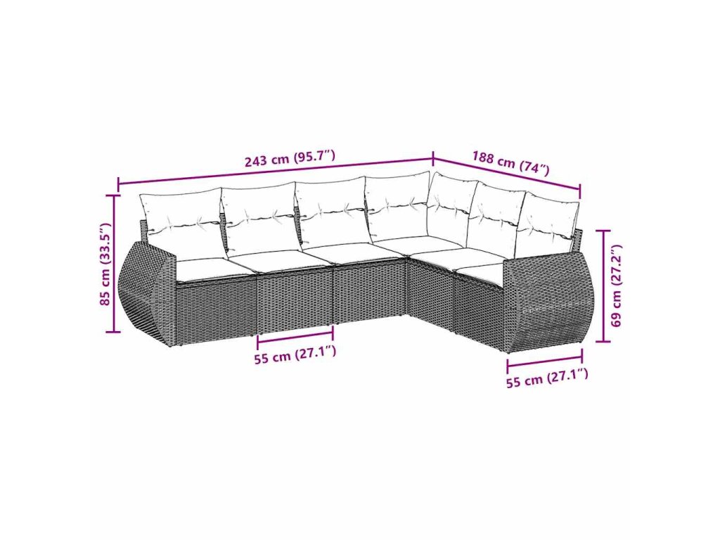 Tato zahradní sedací souprava je dokonalým doplňkem vaší zahrady, terasy nebo dvorku a poskytne vám pohodlné a příjemné místo, kde si můžete povídat s rodinou a přáteli nebo jen tak odpočívat a užívat si pobyt venku.