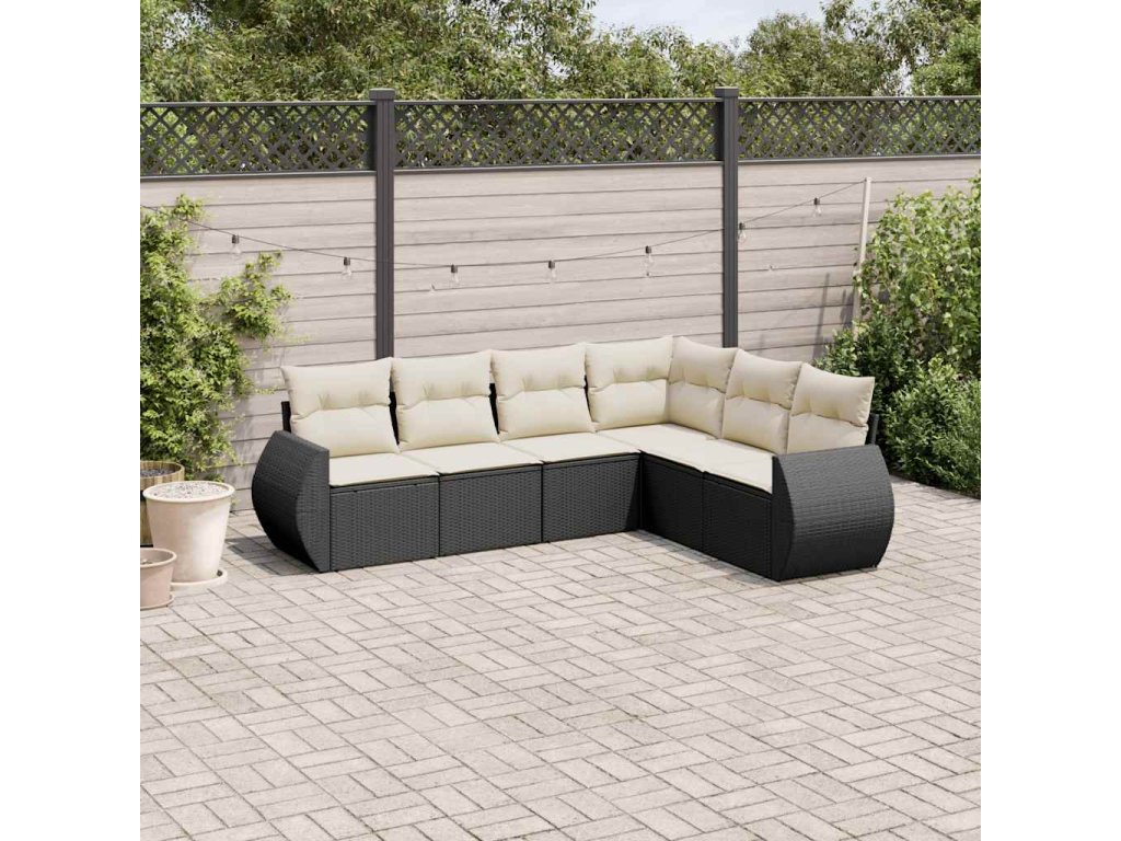 6dílná zahradní sedací souprava s poduškami černá polyratan 3253743