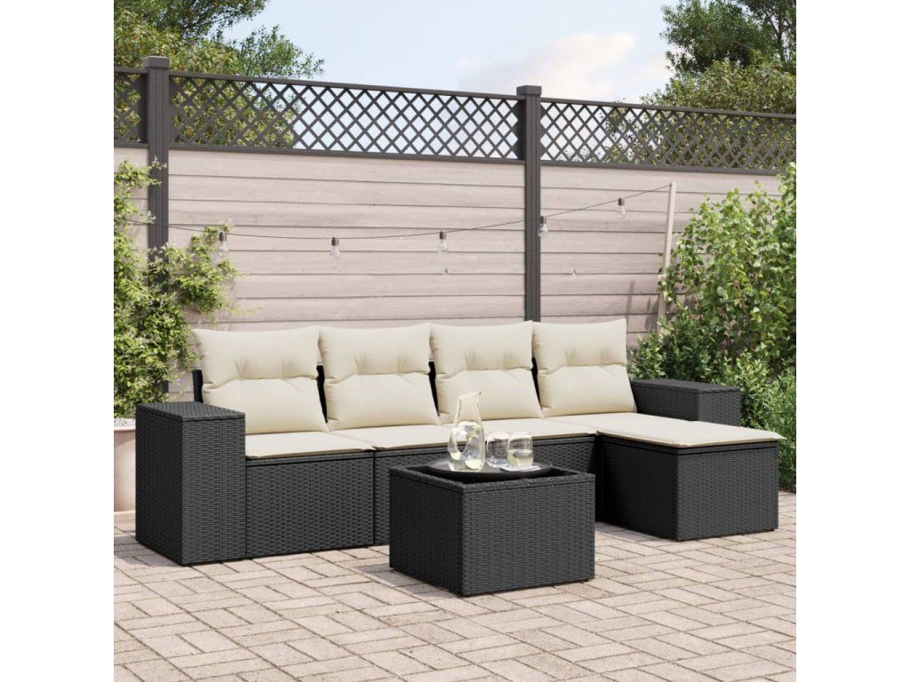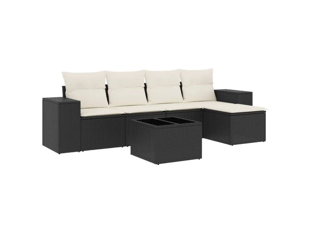 6dílná zahradní sedací souprava s poduškami černá polyratan 3254833