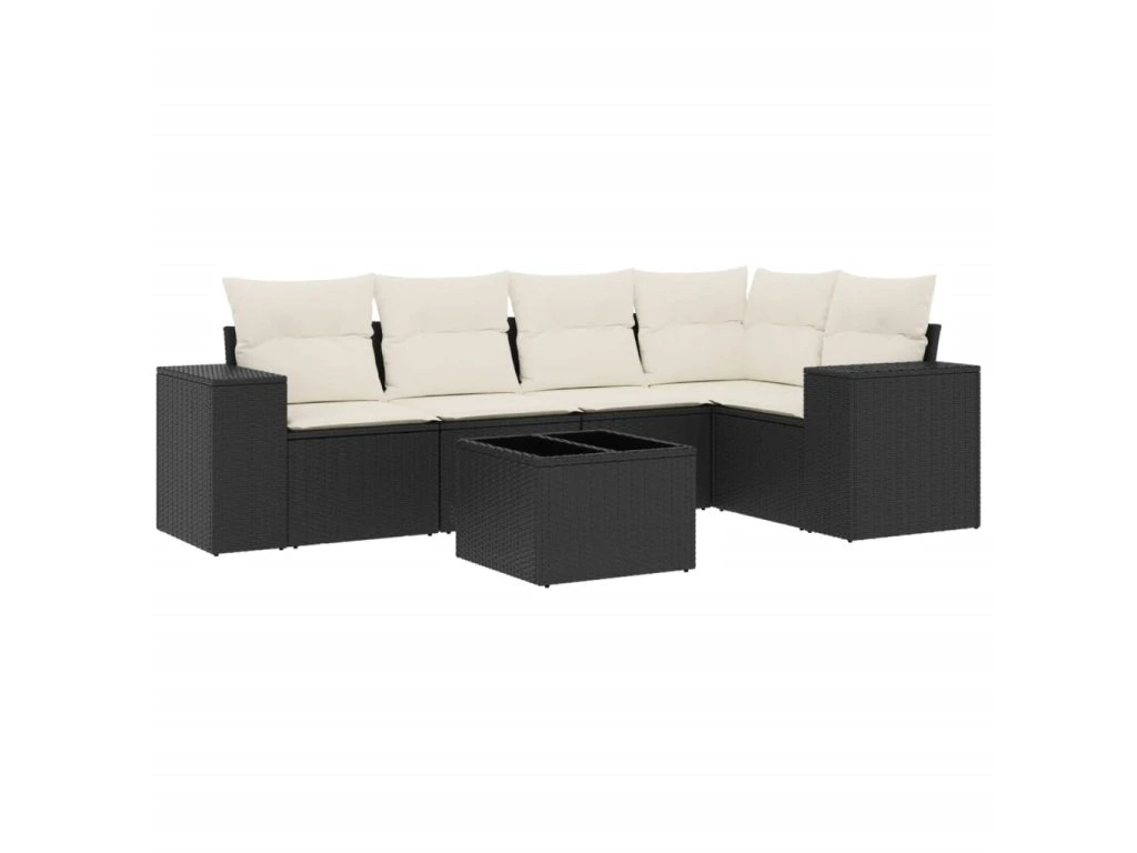 6dílná zahradní sedací souprava s poduškami černá polyratan 3254873