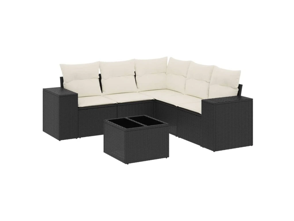6dílná zahradní sedací souprava s poduškami černá polyratan 3254893