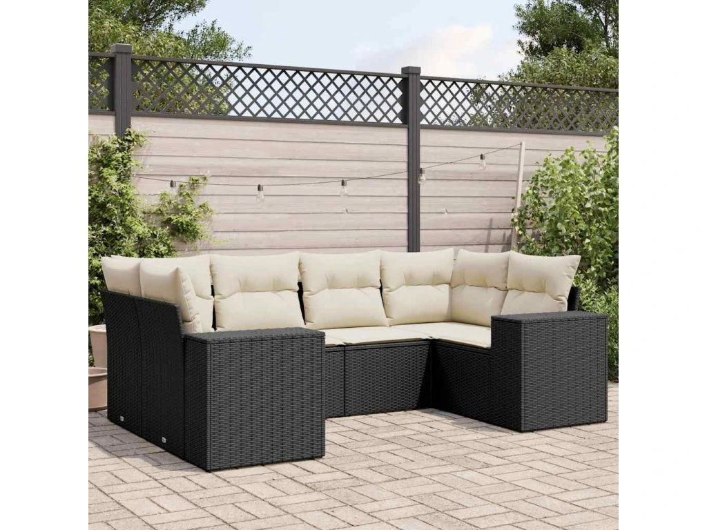 6dílná zahradní sedací souprava s poduškami černá polyratan 3255313