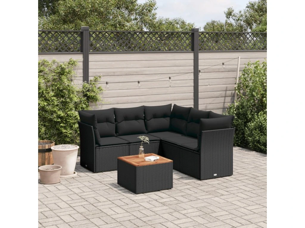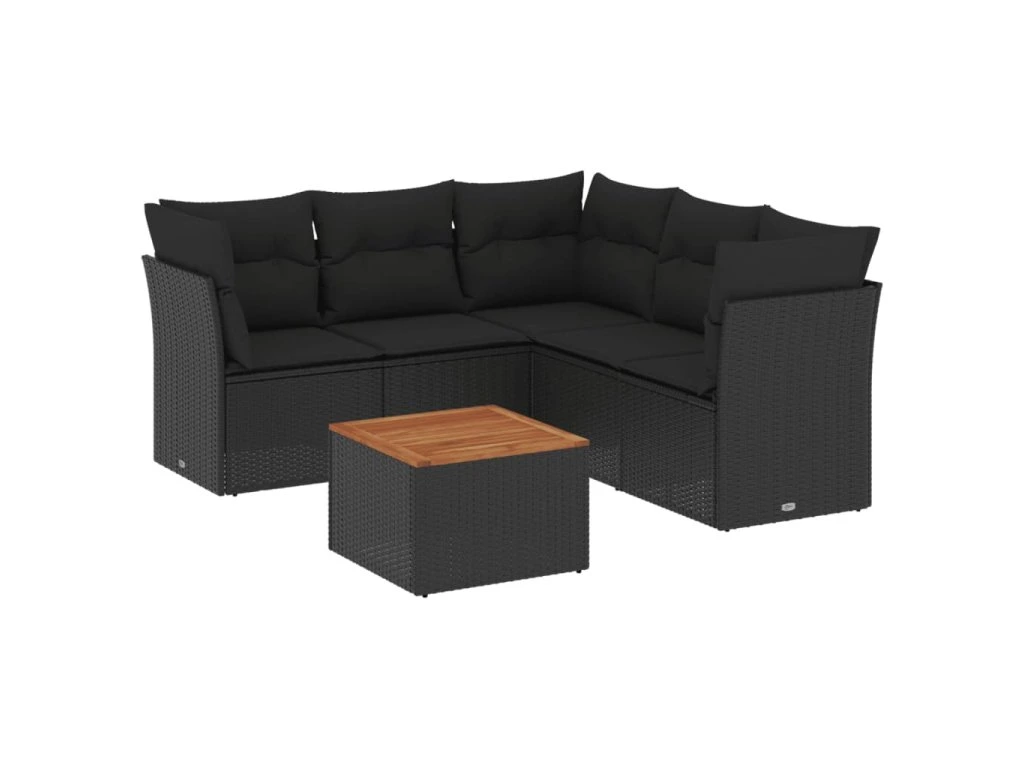 6dílná zahradní sedací souprava s poduškami černá polyratan 3255964