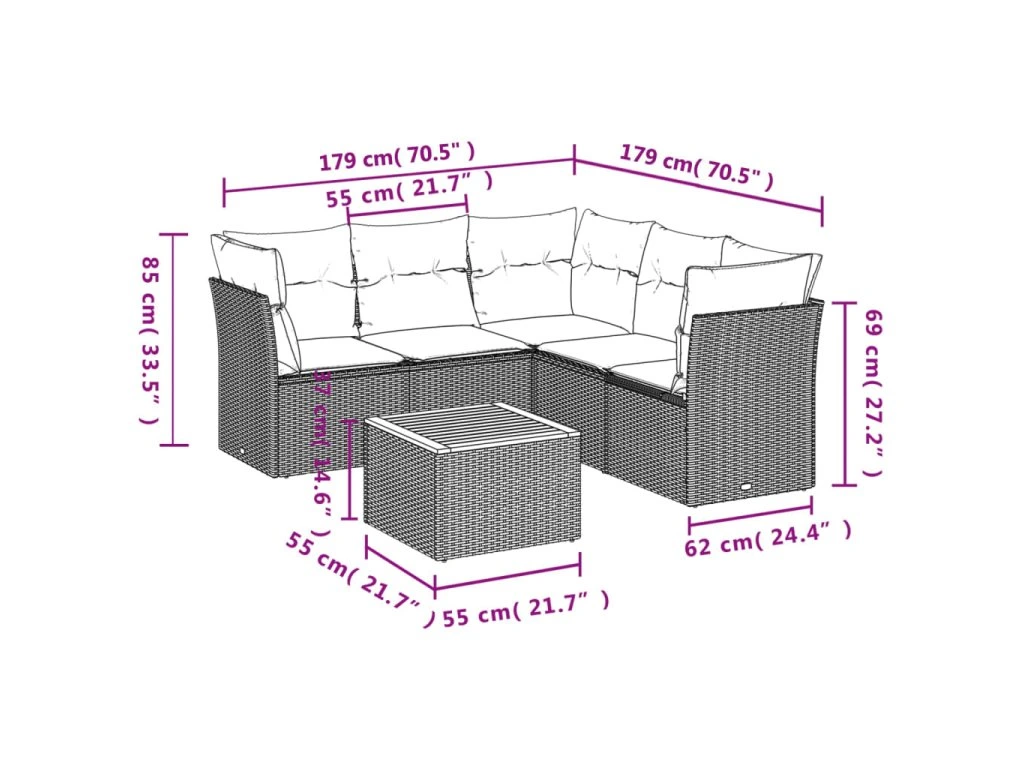Tato zahradní sedací souprava je dokonalým doplňkem vaší zahrady, terasy nebo dvorku a poskytne vám pohodlné a příjemné místo, kde si můžete povídat s rodinou a přáteli nebo jen tak odpočívat a užívat si pobyt venku.