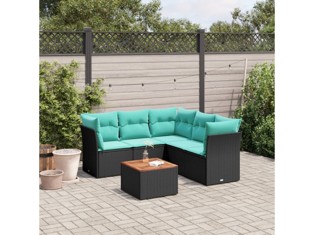 6dílná zahradní sedací souprava s poduškami černá polyratan 3255966