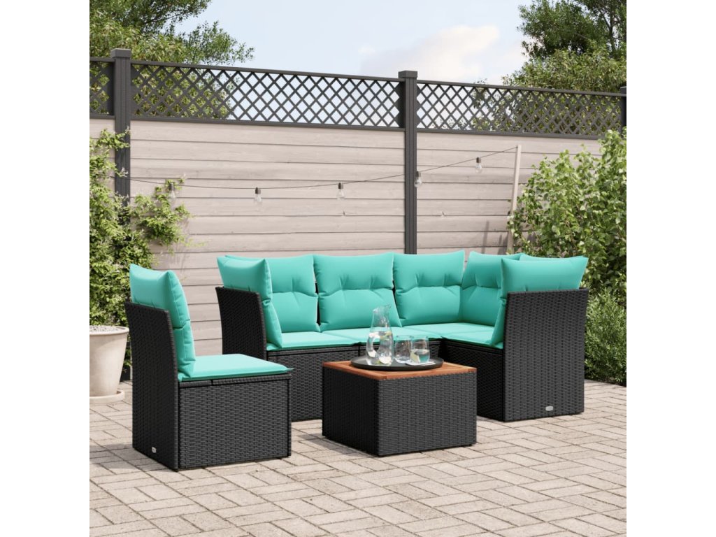 6dílná zahradní sedací souprava s poduškami černá polyratan 3255973