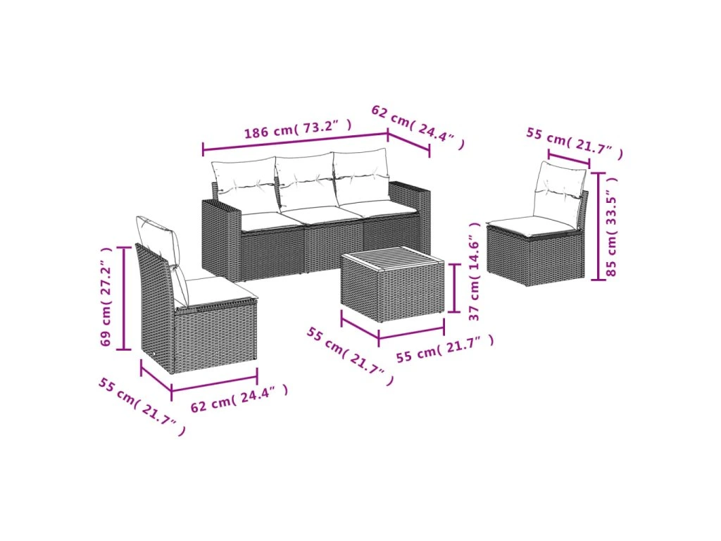 Tato zahradní sedací souprava je dokonalým doplňkem vaší zahrady, terasy nebo dvorku a poskytne vám pohodlné a příjemné místo, kde si můžete povídat s rodinou a přáteli nebo jen tak odpočívat a užívat si pobyt venku.
