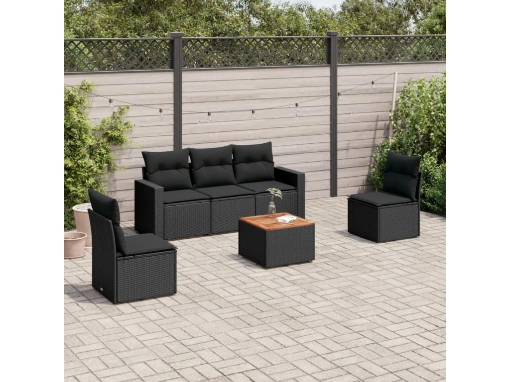 6dílná zahradní sedací souprava s poduškami černá polyratan 3256391