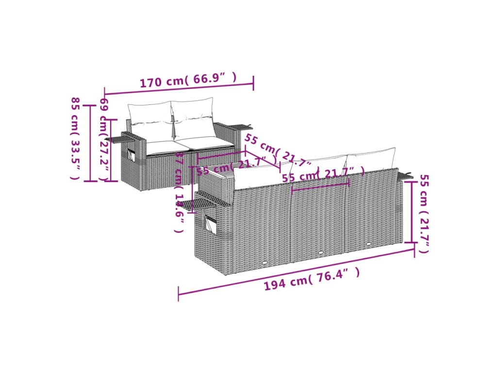 Tato zahradní sedací souprava je dokonalým doplňkem vaší zahrady, terasy nebo dvorku a poskytne vám pohodlné a příjemné místo, kde si můžete povídat s rodinou a přáteli nebo jen tak odpočívat a užívat si pobyt venku.