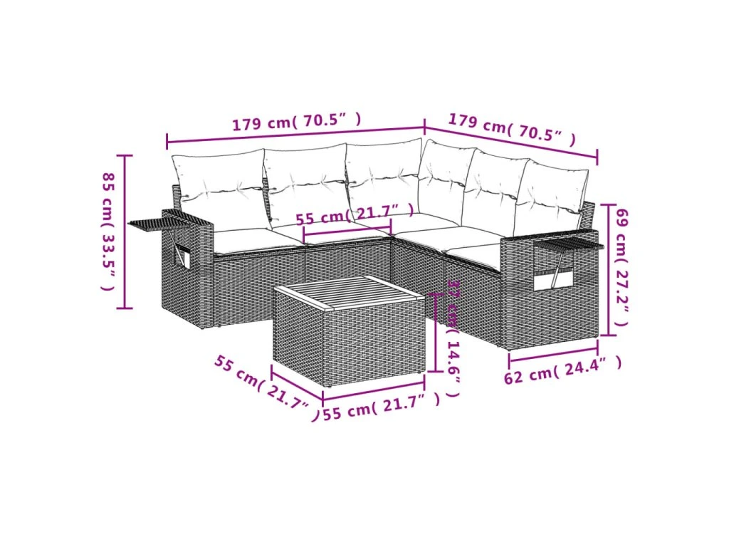 Tato zahradní sedací souprava je dokonalým doplňkem vaší zahrady, terasy nebo dvorku a poskytne vám pohodlné a příjemné místo, kde si můžete povídat s rodinou a přáteli nebo jen tak odpočívat a užívat si pobyt venku.