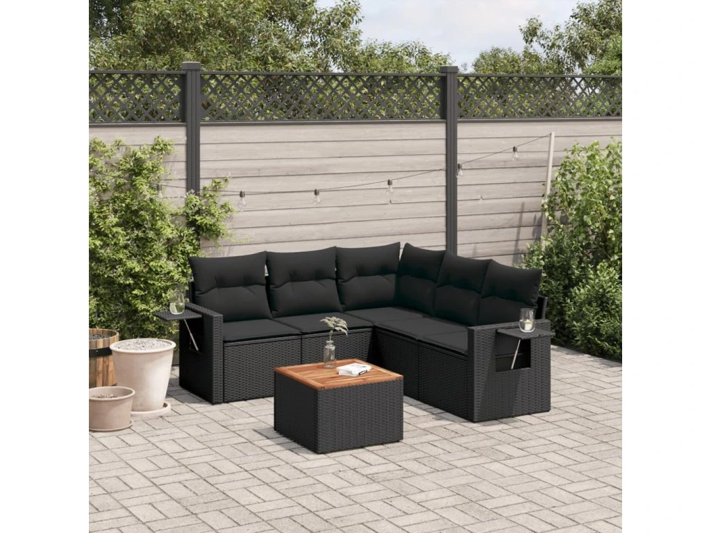 6dílná zahradní sedací souprava s poduškami černá polyratan 3256888