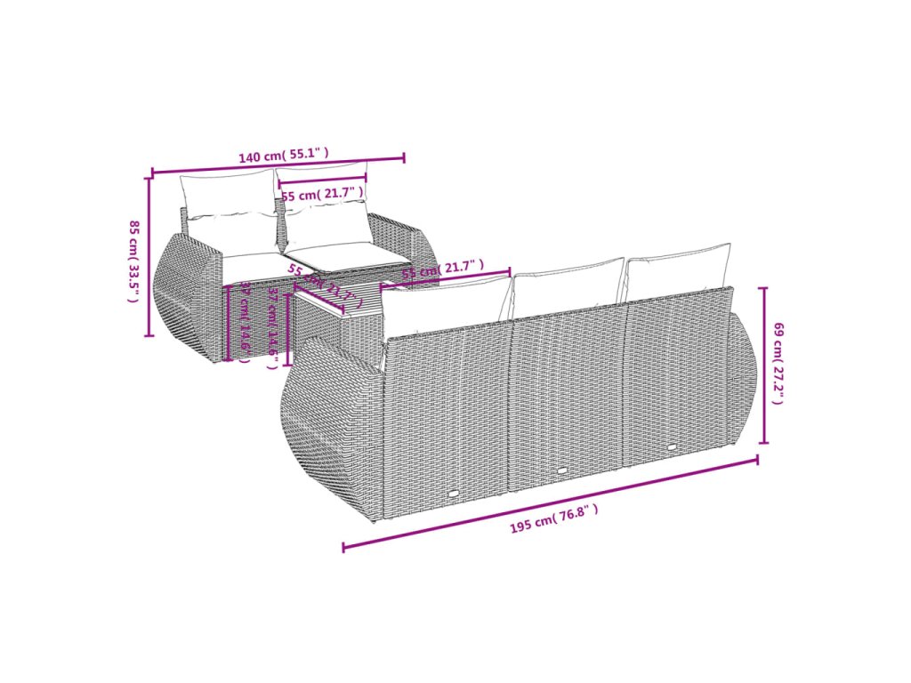 Tato zahradní sedací souprava je dokonalým doplňkem vaší zahrady, terasy nebo dvorku a poskytne vám pohodlné a příjemné místo, kde si můžete povídat s rodinou a přáteli nebo jen tak odpočívat a užívat si pobyt venku.