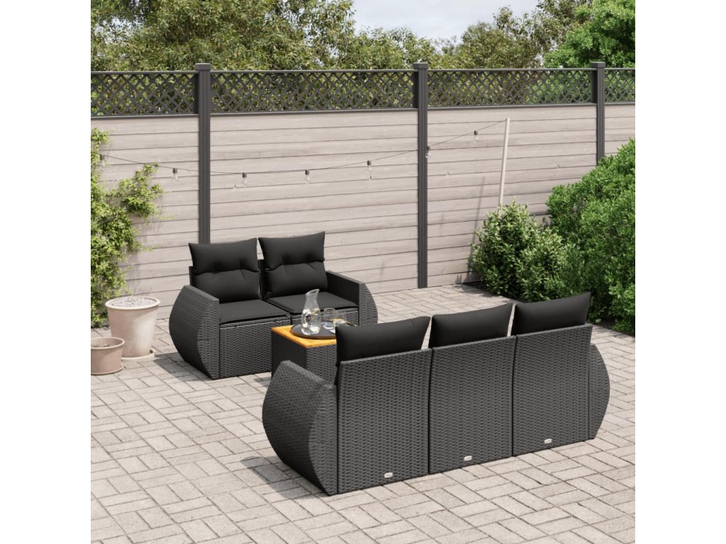 6dílná zahradní sedací souprava s poduškami černá polyratan 3257217