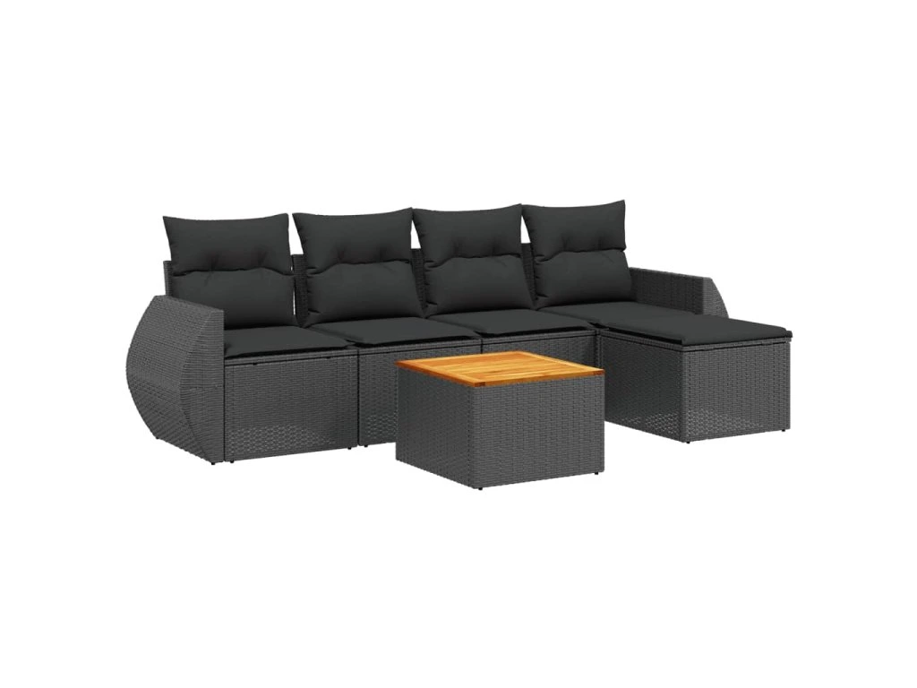 6dílná zahradní sedací souprava s poduškami černá polyratan 3257308