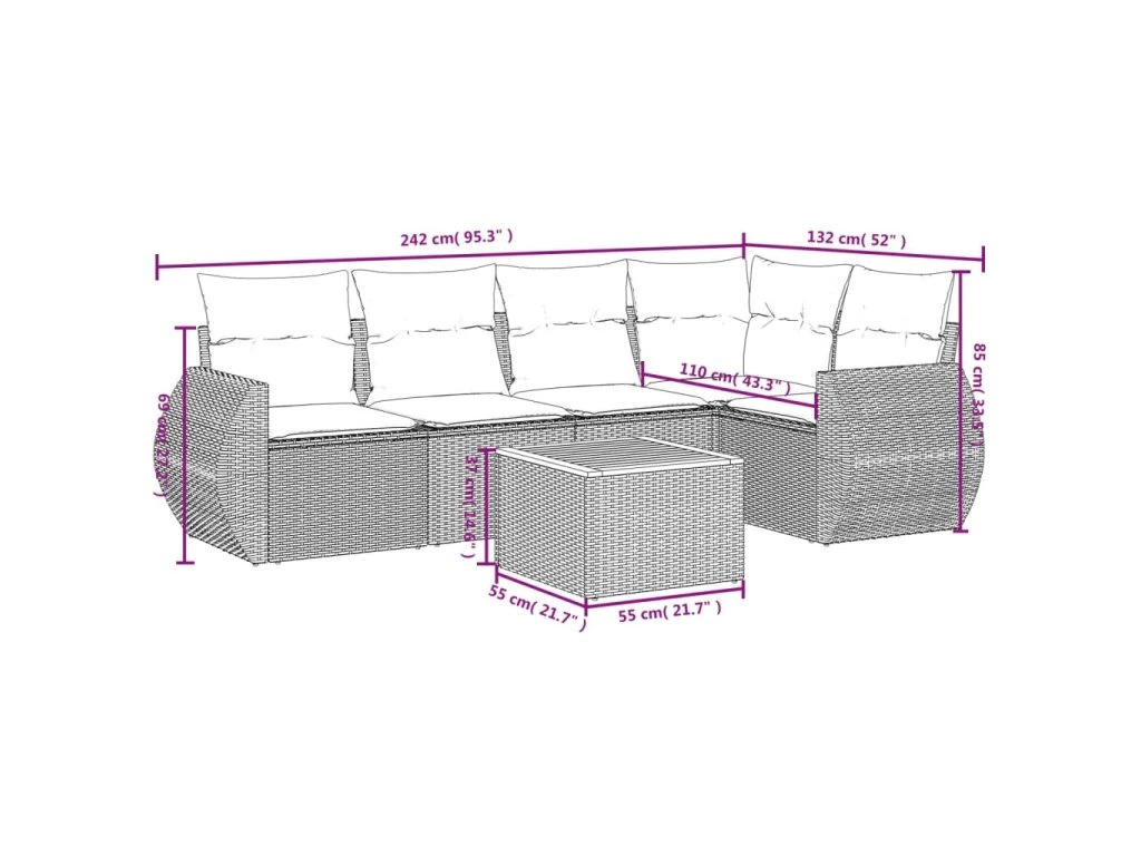 Tato zahradní sedací souprava je dokonalým doplňkem vaší zahrady, terasy nebo dvorku a poskytne vám pohodlné a příjemné místo, kde si můžete povídat s rodinou a přáteli nebo jen tak odpočívat a užívat si pobyt venku.