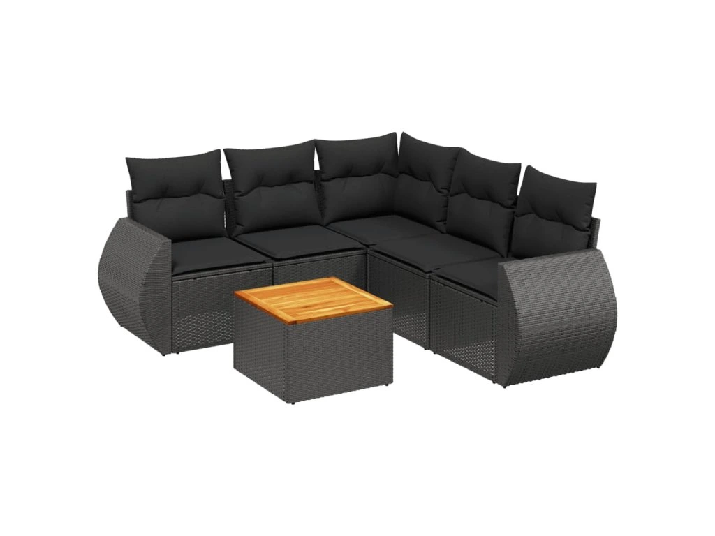 6dílná zahradní sedací souprava s poduškami černá polyratan 3257329