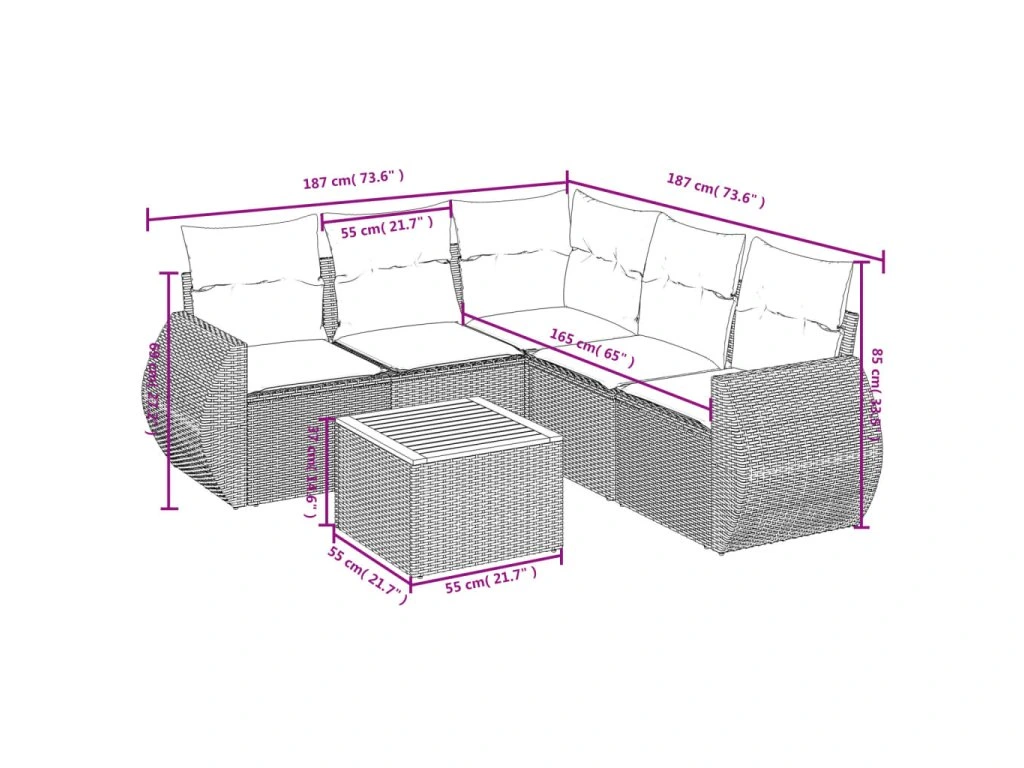 Tato zahradní sedací souprava je dokonalým doplňkem vaší zahrady, terasy nebo dvorku a poskytne vám pohodlné a příjemné místo, kde si můžete povídat s rodinou a přáteli nebo jen tak odpočívat a užívat si pobyt venku.