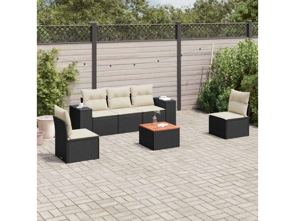 6dílná zahradní sedací souprava s poduškami černá polyratan 3257715