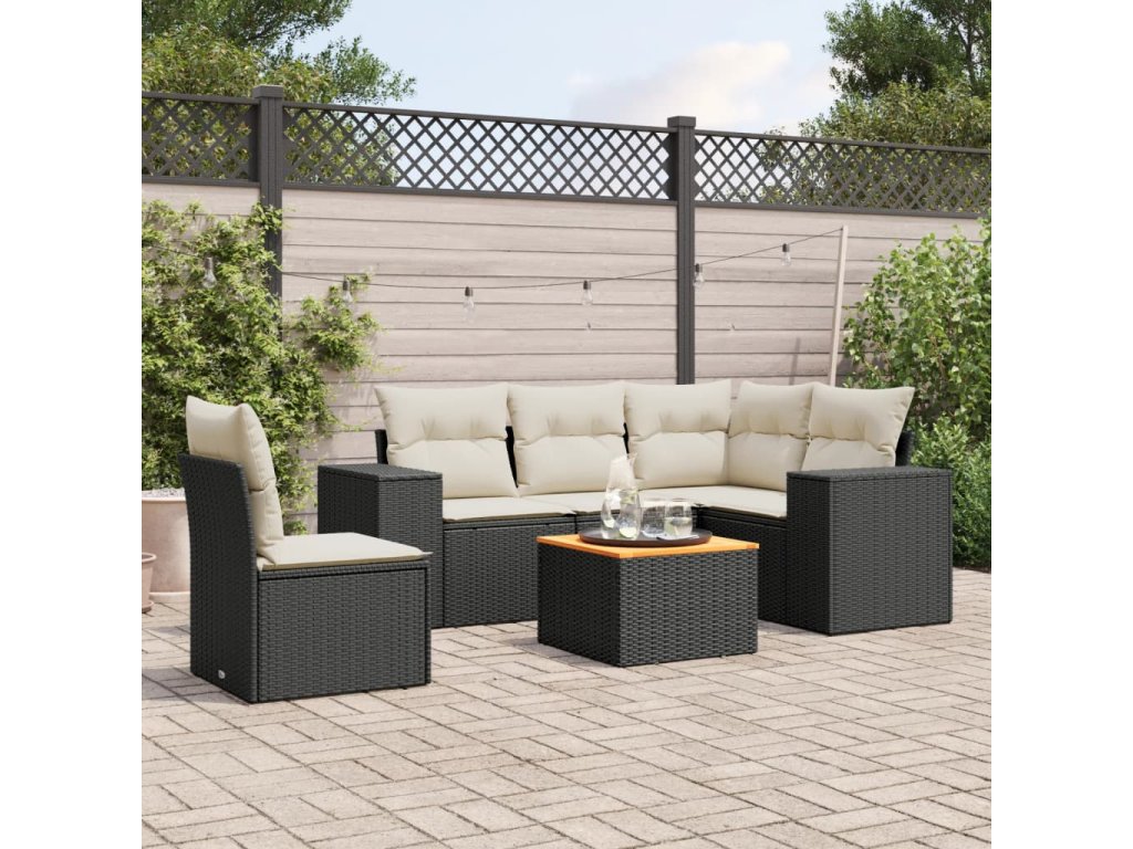 6dílná zahradní sedací souprava s poduškami černá polyratan 3257778