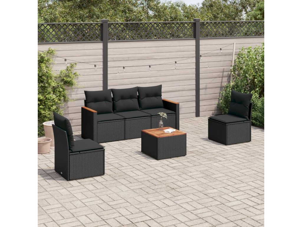 6dílná zahradní sedací souprava s poduškami černá polyratan 3258254
