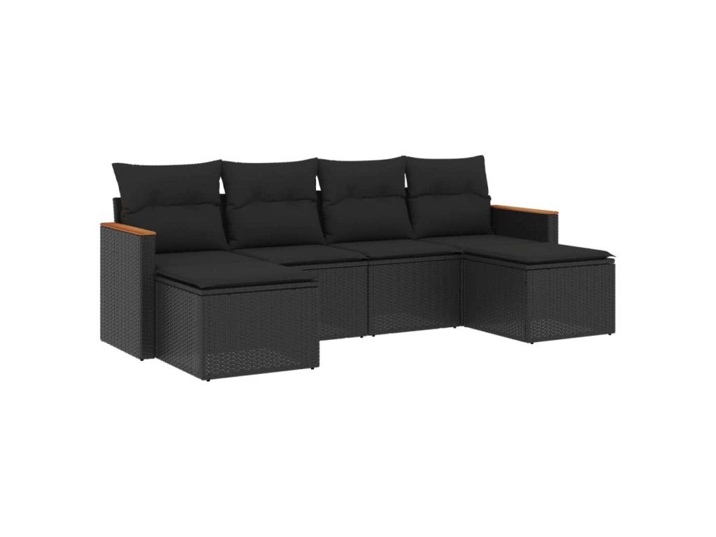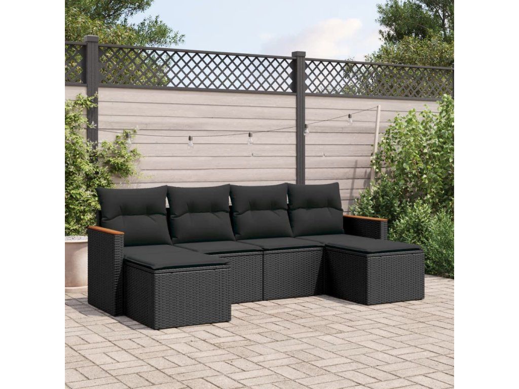 6dílná zahradní sedací souprava s poduškami černá polyratan 3258618