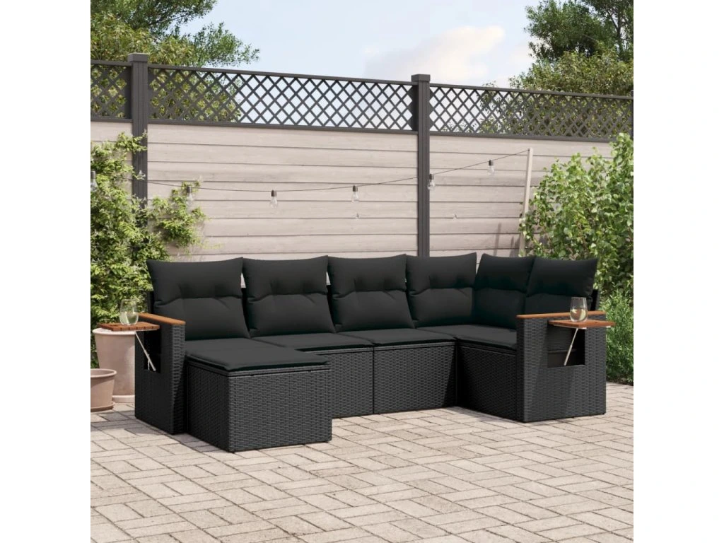 6dílná zahradní sedací souprava s poduškami černá polyratan 3259416