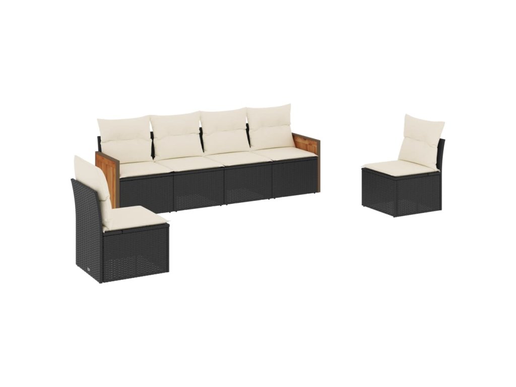 6dílná zahradní sedací souprava s poduškami černá polyratan 3259942