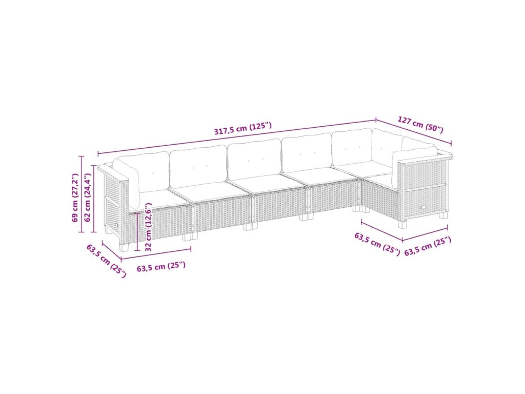 - Rozměry podušky na sedák (středový díl): 63,5 x 56,5 x 3 cm (Š x H x T)