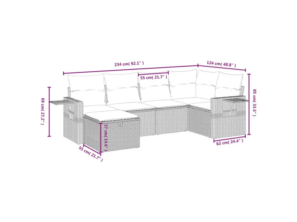Tato zahradní sedací souprava je dokonalým doplňkem vaší zahrady, terasy nebo dvorku a poskytne vám pohodlné a příjemné místo, kde si můžete povídat s rodinou a přáteli nebo jen tak odpočívat a užívat si pobyt venku.