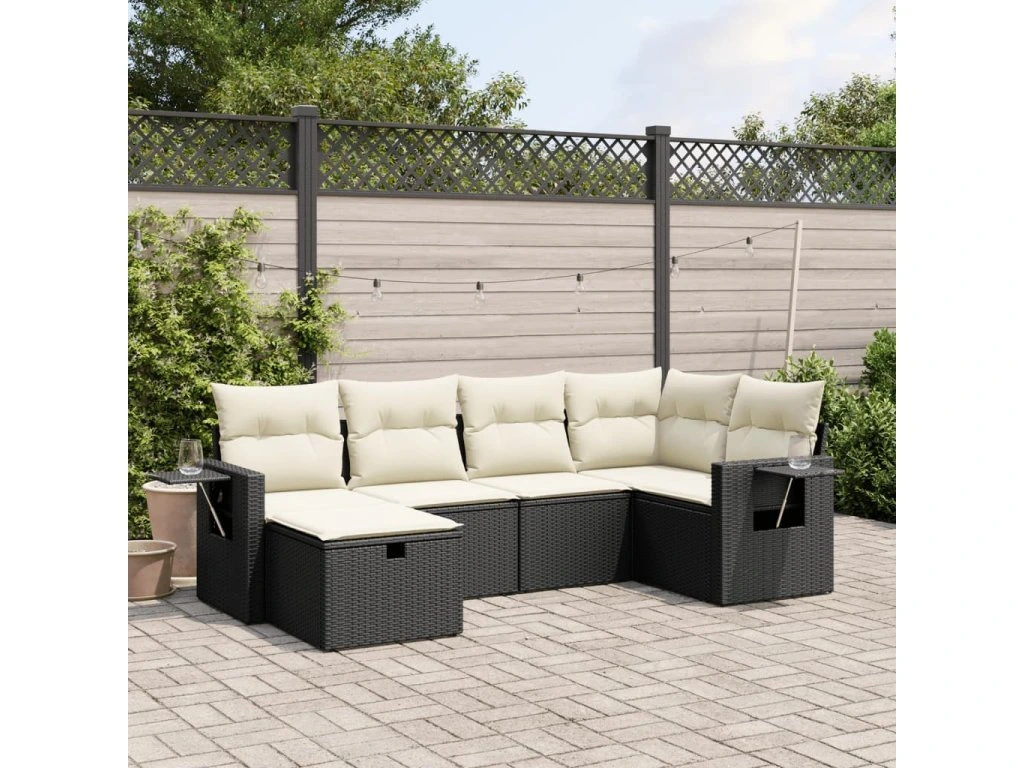 6dílná zahradní sedací souprava s poduškami černá polyratan 3263792