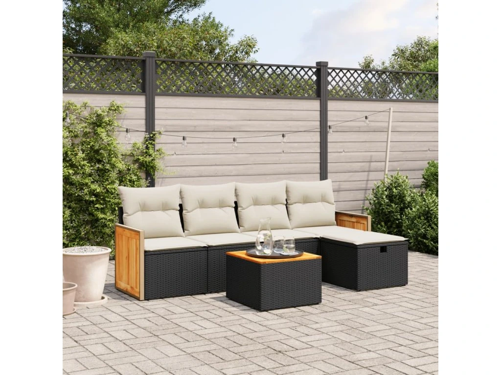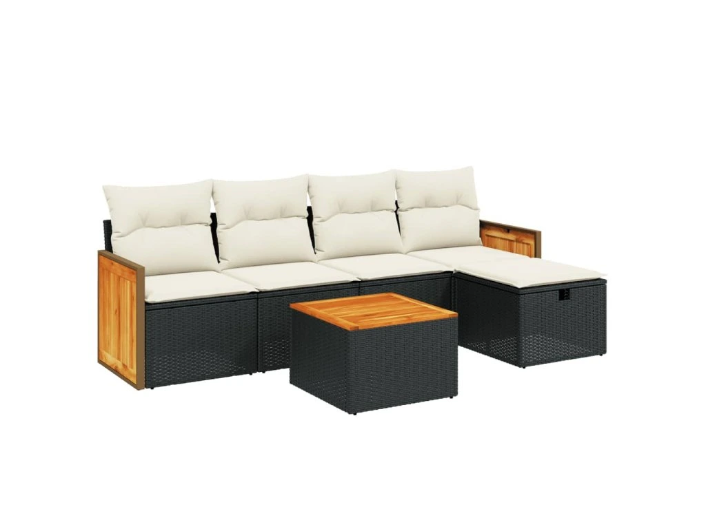 6dílná zahradní sedací souprava s poduškami černá polyratan 3265725