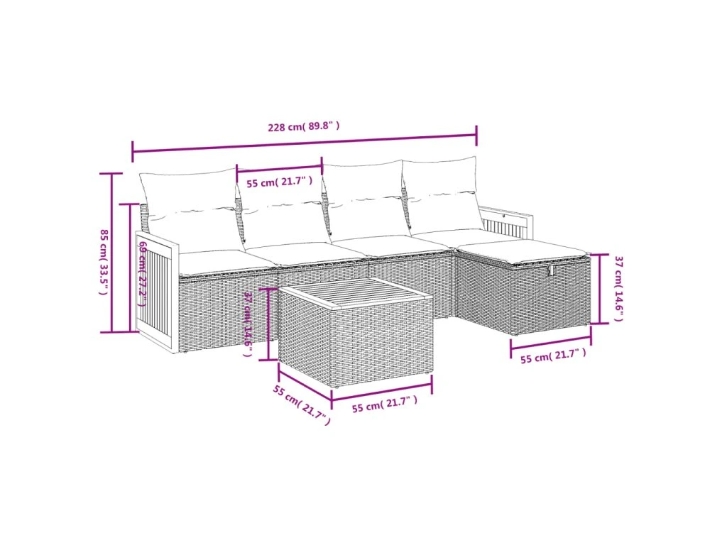 Tato zahradní sedací souprava je dokonalým doplňkem vaší zahrady, terasy nebo dvorku a poskytne vám pohodlné a příjemné místo, kde si můžete povídat s rodinou a přáteli nebo jen tak odpočívat a užívat si pobyt venku.