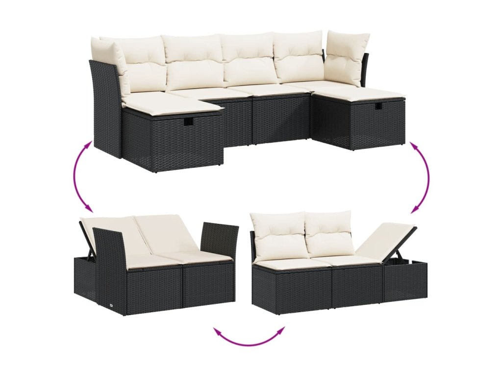 6dílná zahradní sedací souprava s poduškami černá polyratan 3265774