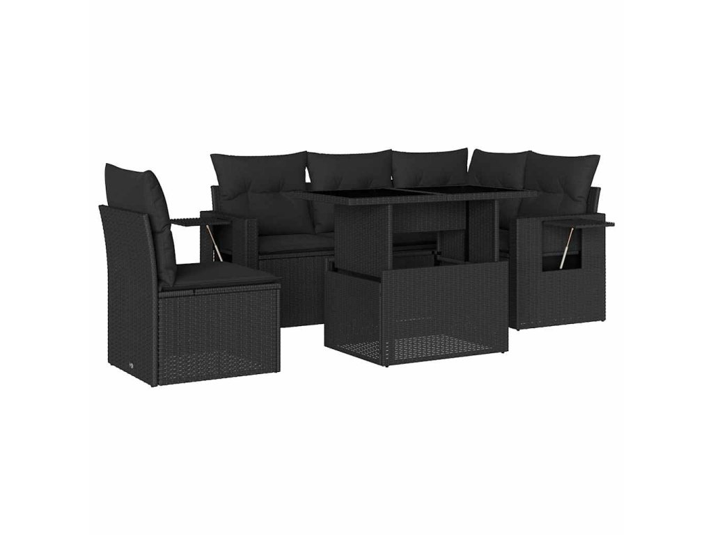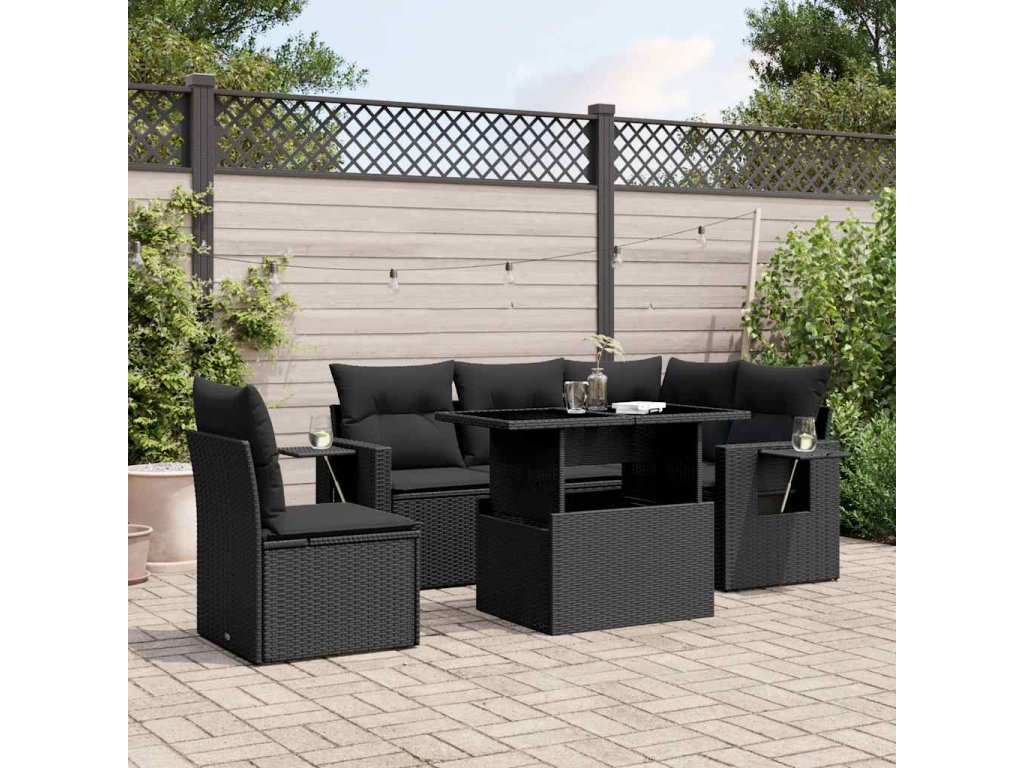 6dílná zahradní sedací souprava s poduškami černá polyratan 3267905