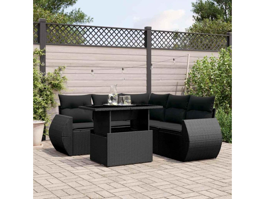 6dílná zahradní sedací souprava s poduškami černá polyratan 3268525