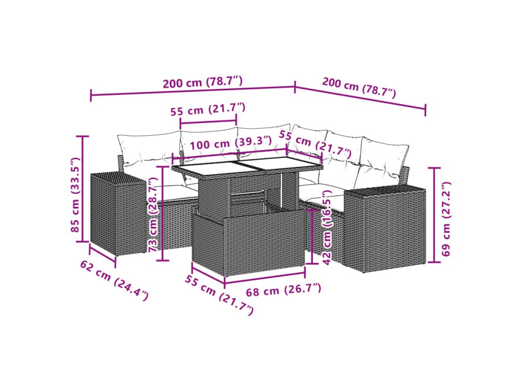 Tato zahradní sedací souprava je dokonalým doplňkem vaší zahrady, terasy nebo dvorku a poskytne vám pohodlné a příjemné místo, kde si můžete povídat s rodinou a přáteli nebo jen tak odpočívat a užívat si pobyt venku.