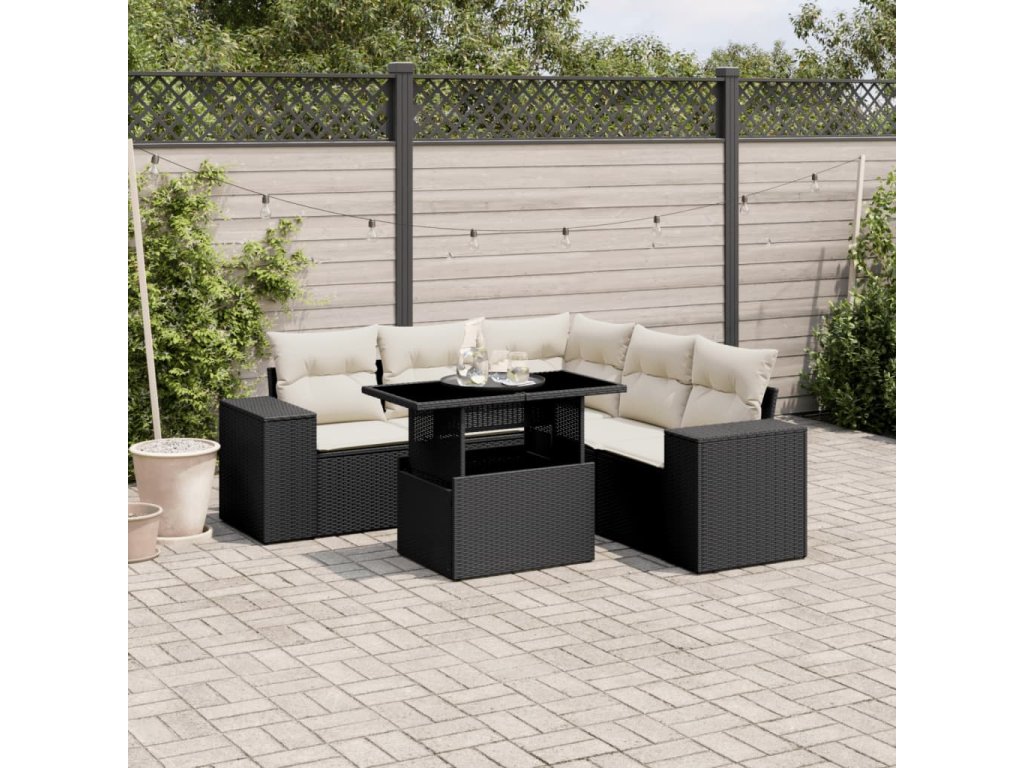 6dílná zahradní sedací souprava s poduškami černá polyratan 3269156