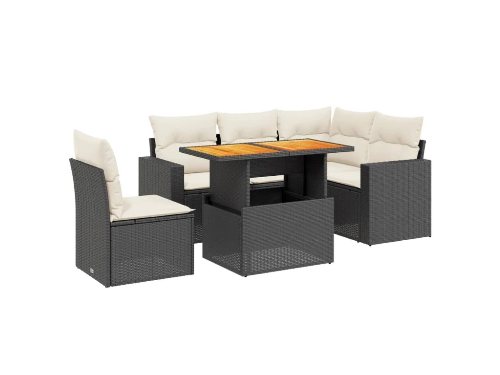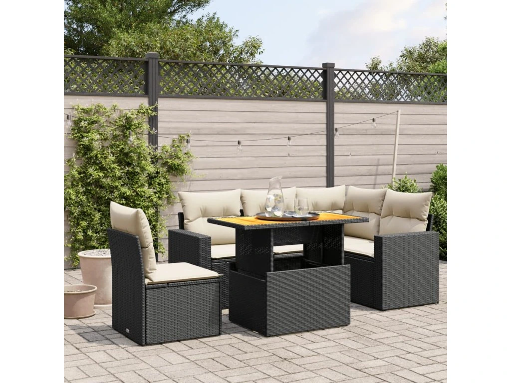 6dílná zahradní sedací souprava s poduškami černá polyratan 3271315
