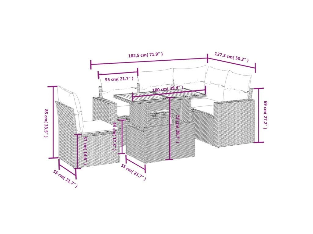 Tato zahradní sedací souprava je dokonalým doplňkem vaší zahrady, terasy nebo dvorku a poskytne vám pohodlné a příjemné místo, kde si můžete povídat s rodinou a přáteli nebo jen tak odpočívat a užívat si pobyt venku.