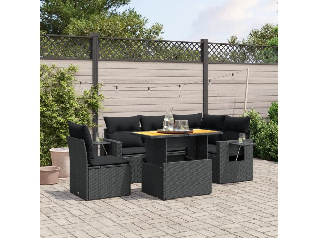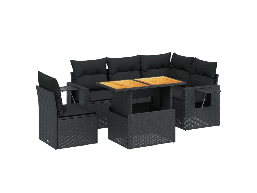6dílná zahradní sedací souprava s poduškami černá polyratan 3271755