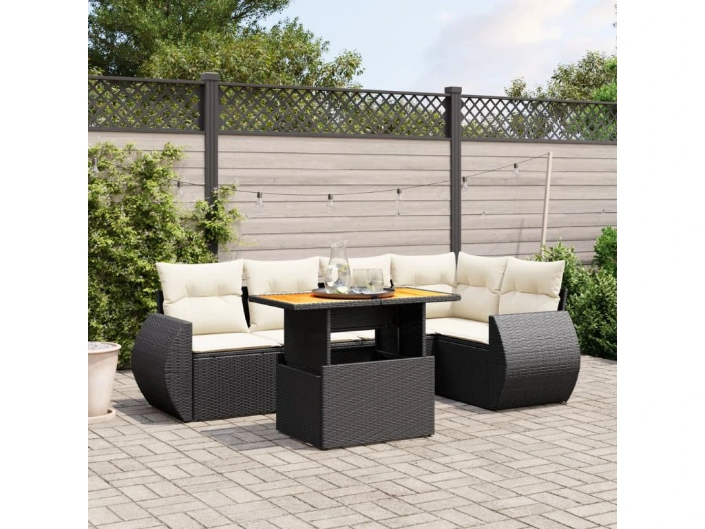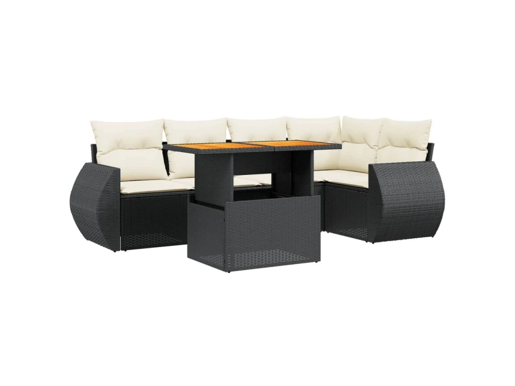 6dílná zahradní sedací souprava s poduškami černá polyratan 3272183