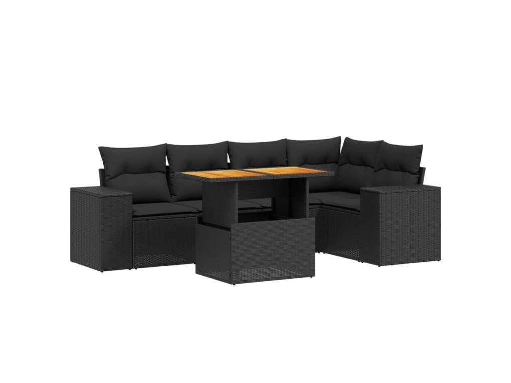 6dílná zahradní sedací souprava s poduškami černá polyratan 3272623