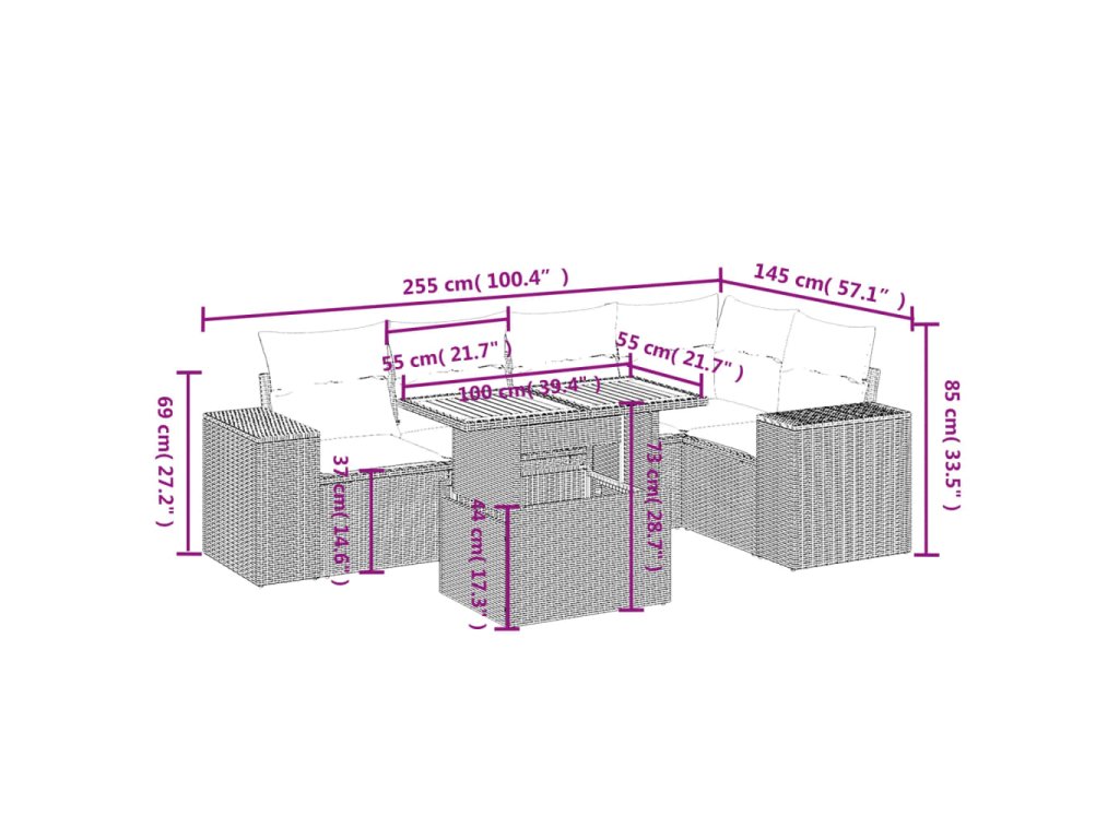 Tato zahradní sedací souprava je dokonalým doplňkem vaší zahrady, terasy nebo dvorku a poskytne vám pohodlné a příjemné místo, kde si můžete povídat s rodinou a přáteli nebo jen tak odpočívat a užívat si pobyt venku.