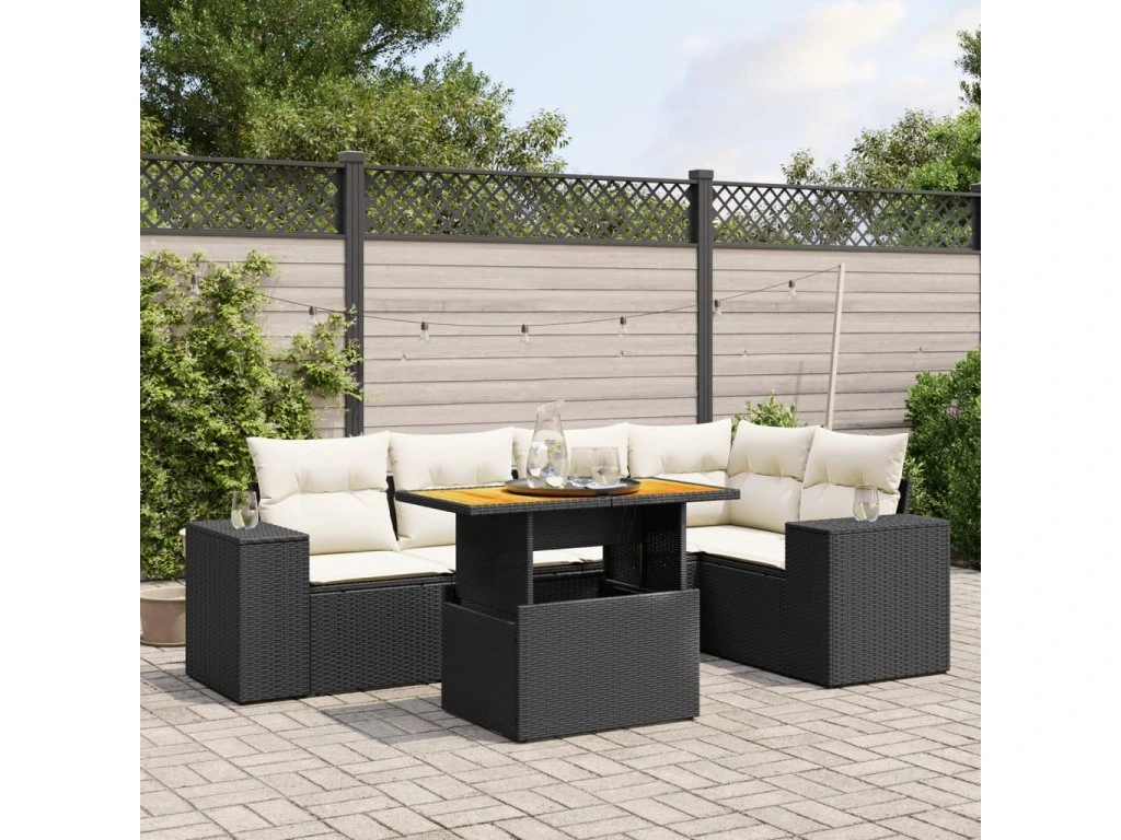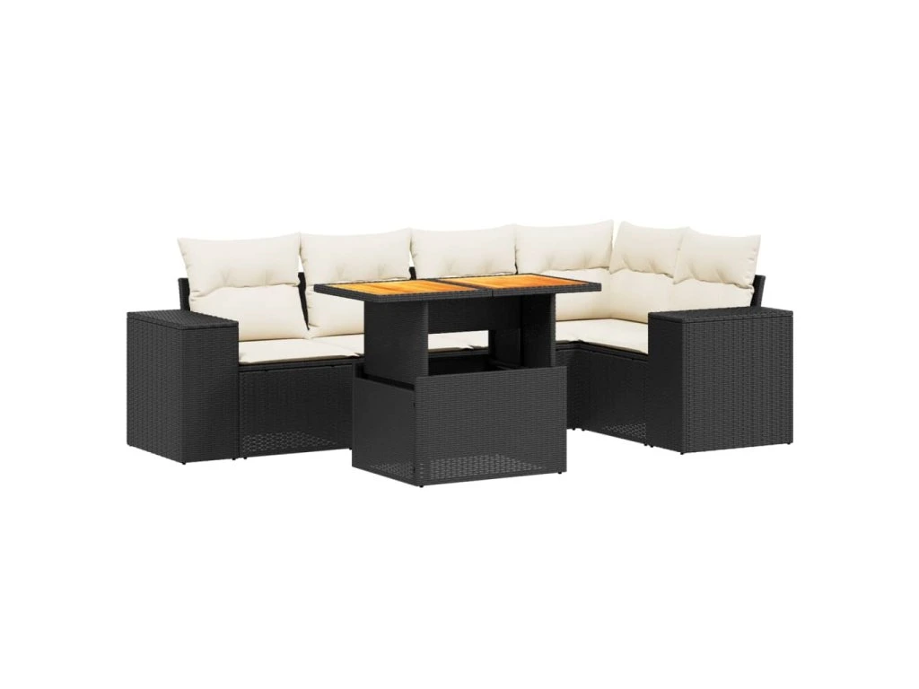 6dílná zahradní sedací souprava s poduškami černá polyratan 3272624