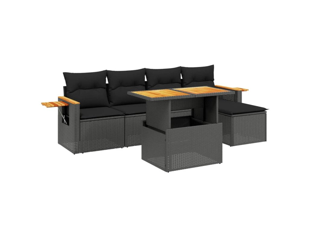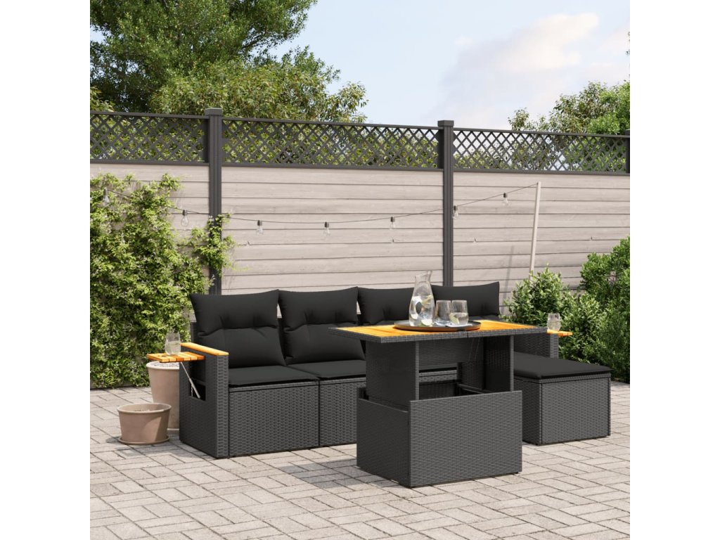 6dílná zahradní sedací souprava s poduškami černá polyratan 3273491