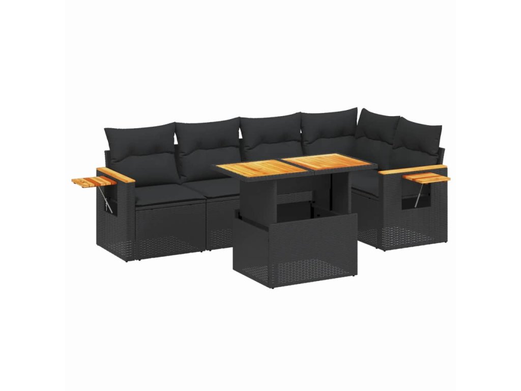 6dílná zahradní sedací souprava s poduškami černá polyratan 3273505