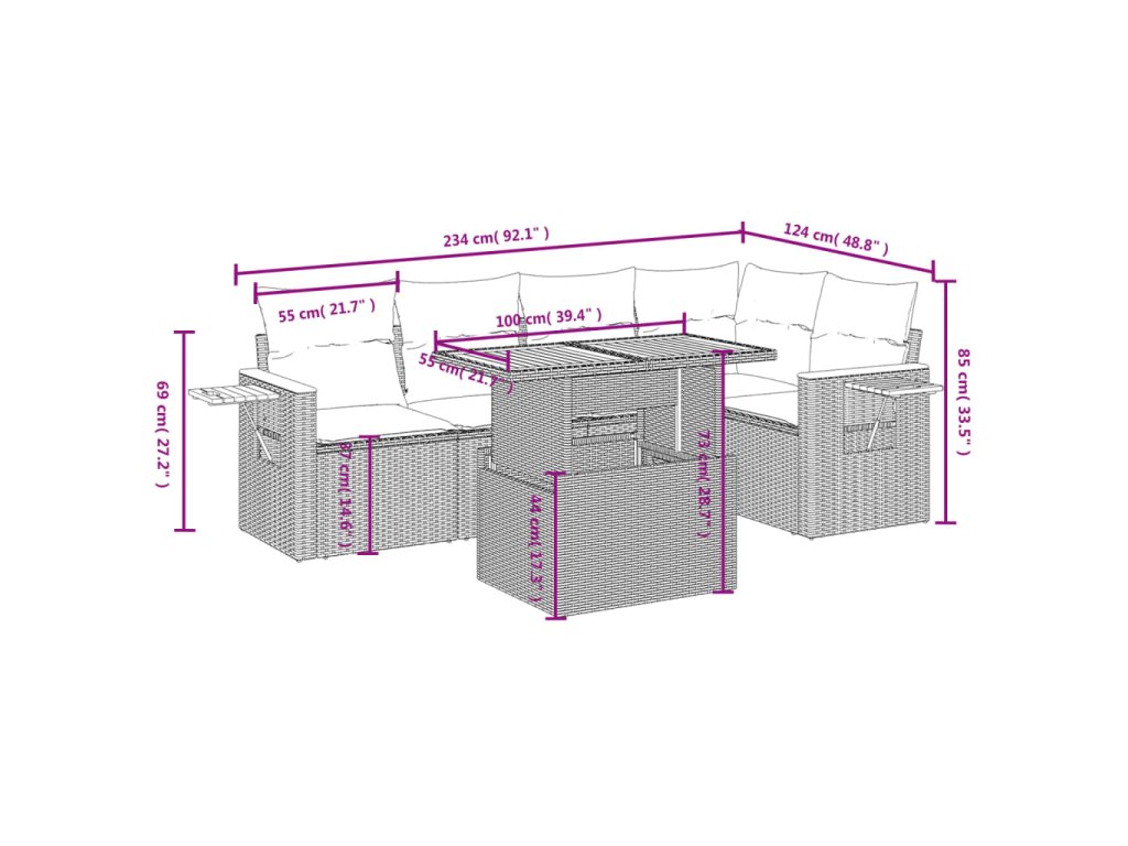 Tato zahradní sedací souprava je dokonalým doplňkem vaší zahrady, terasy nebo dvorku a poskytne vám pohodlné a příjemné místo, kde si můžete povídat s rodinou a přáteli nebo jen tak odpočívat a užívat si pobyt venku.