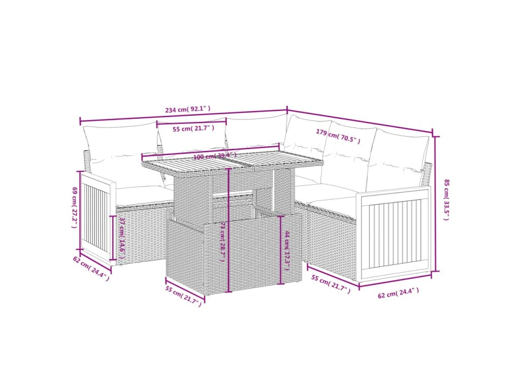 Tato zahradní sedací souprava je dokonalým doplňkem vaší zahrady, terasy nebo dvorku a poskytne vám pohodlné a příjemné místo, kde si můžete povídat s rodinou a přáteli nebo jen tak odpočívat a užívat si pobyt venku.