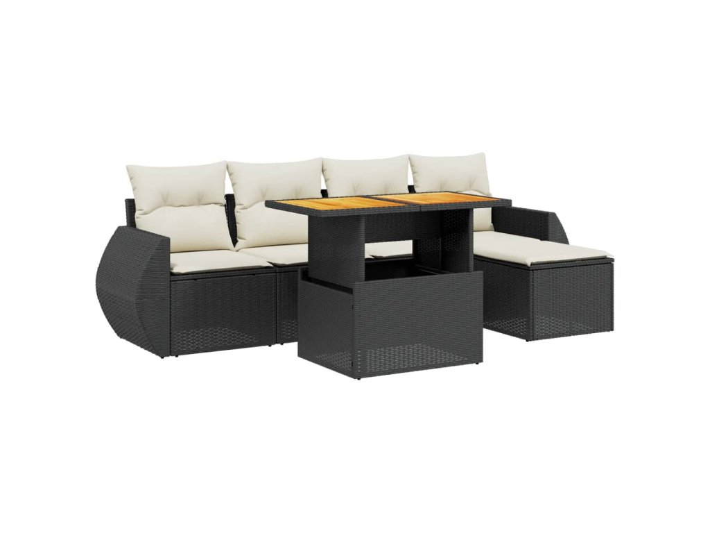 6dílná zahradní sedací souprava s poduškami černá polyratan 3275807
